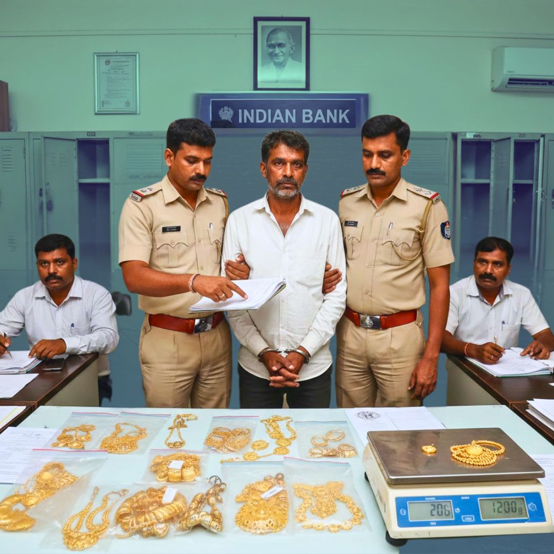 Police arrested 34-year-old Kiran Kumar, who allegedly misused his exclusive access to locker keys in the absence of the branch manager to siphon gold over several months. Around 1.2 kg of gold has been recovered so far; investigators are trying to trace the rest and pursue legal action against non-co-operating financiers.