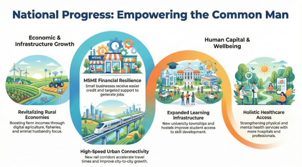 - MSMEs gain easier credit and targeted support, helping small businesses expand, generate jobs, and improve financial resilience.