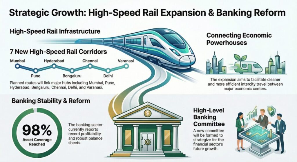 On the financial front, citing robust bank balance sheets, record profitability and asset coverage of over 98%, the government announced the formation of a high-level banking committee.
