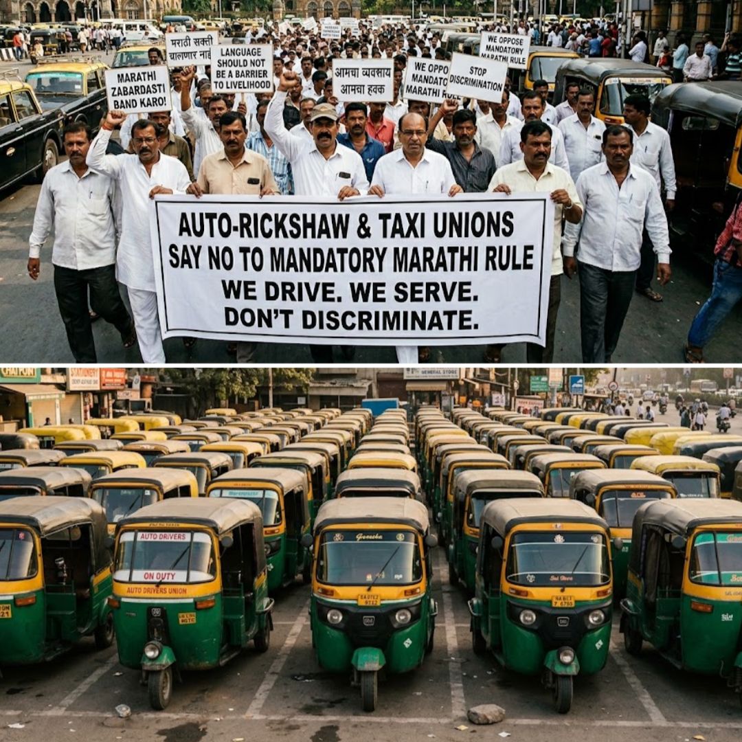 The Mumbai Autorickshawmen’s Union has announced a statewide agitation beginning May 4 against the Government of Maharashtra over a new directive requiring autorickshaw and taxi drivers to demonstrate proficiency in Marathi.