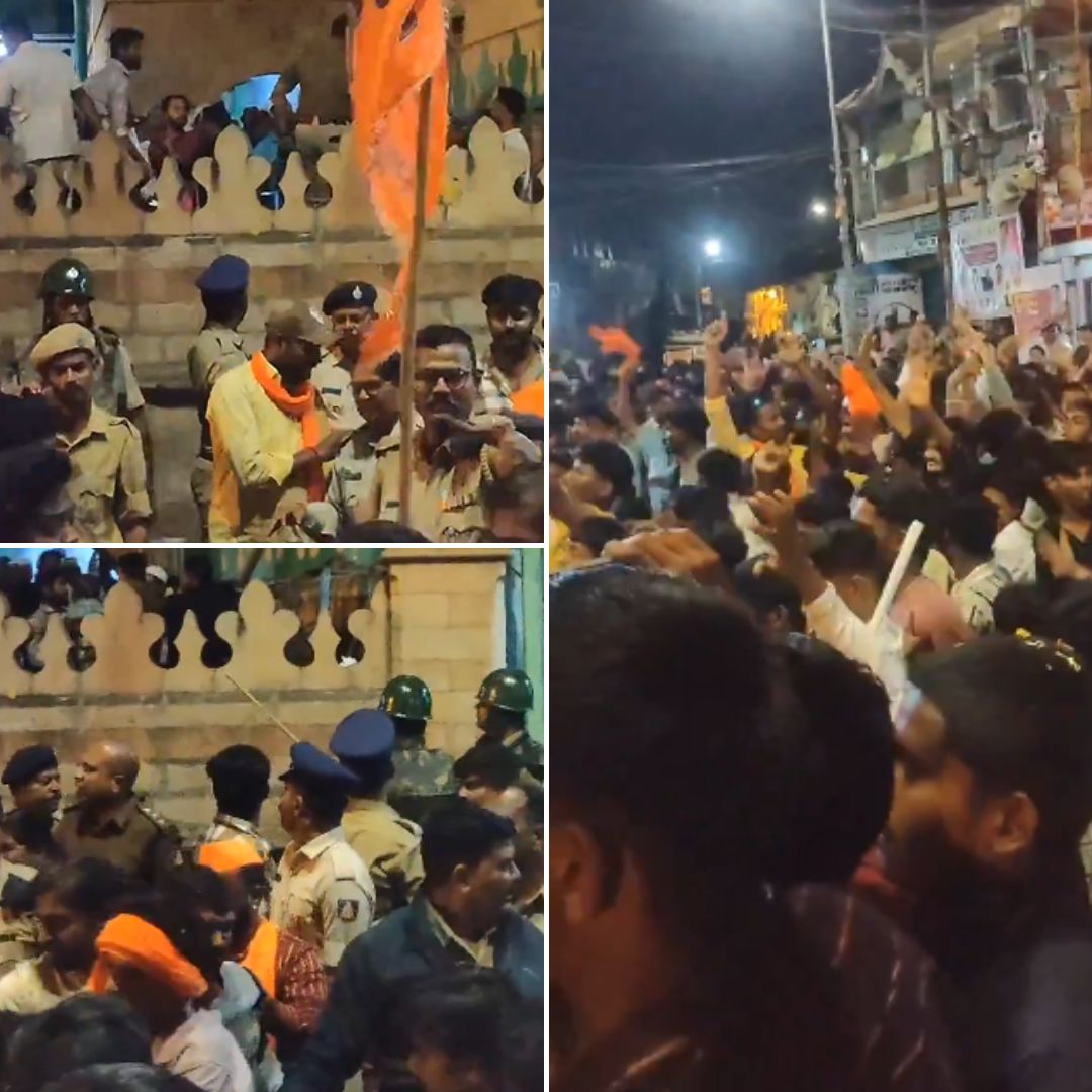 According to police, the rally which began around 3:30 pm from Ambabhavani Temple and was proceeding towards Basaveshwar Circle was peaceful until it reached the mosque area, where some individuals reportedly objected to certain songs being played and congregational noise.