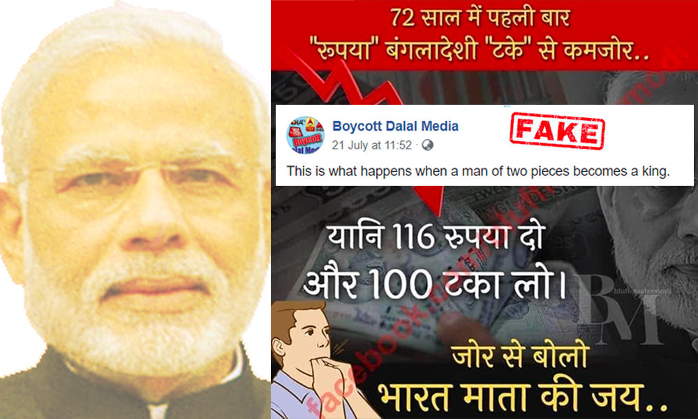 A graphic has been recently gaining momentum on social media which says that for the ‘first time in 72 years Indian Rupee is weaker than Bangladeshi Taka’.