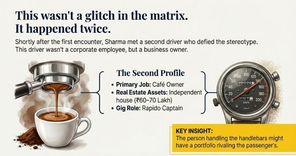 Remarkably, this wasn’t Sharma’s only encounter with a high-profile gig worker. On a separate occasion, he met another Rapido driver with an equally impressive background.