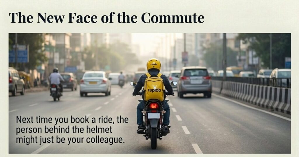 Imagine booking a bike taxi for a quick commute, only to discover your driver is a corporate professional who owns a luxury apartment. In Bengaluru, this isn’t a plot from a movie, it’s the reality of a modern, fast-paced economy where “side hustles” are taking on a whole new meaning.