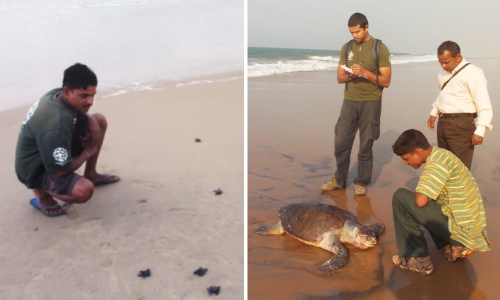 Bichi Bhai noticing the olive Ridley turtles on the beach.
