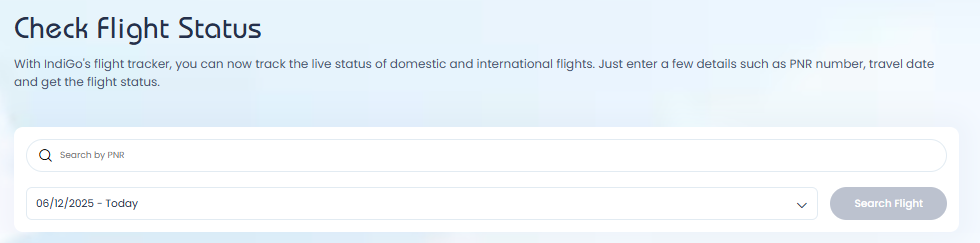 - IndiGo website or app – Flight Status: Enter your PNR or flight number and date to see whether your flight is On-Time, Delayed, Cancelled, Departed or Landed. IndiGo also publishes updates for eligible flights that qualify for customer remedies.