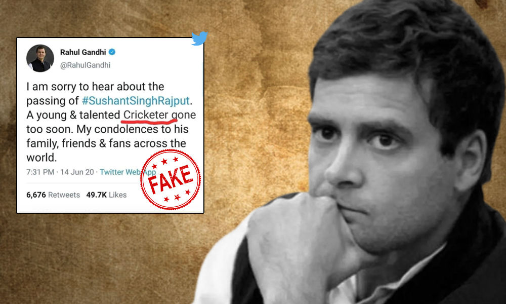 Rahul Gandhi had expressed his condolences on June 14 at 7: 31 PM. The original tweet does not say what the viral screenshot claims. He had addressed Rajput as a ‘young & talented actor’.