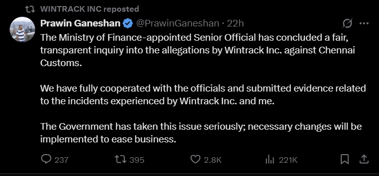 Wintrack's public fight against Chennai Customs corruption has sparked a nationwide probe and social media storm.