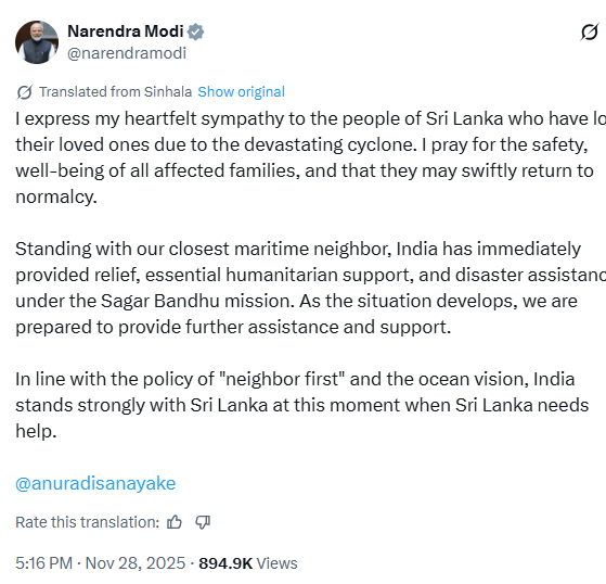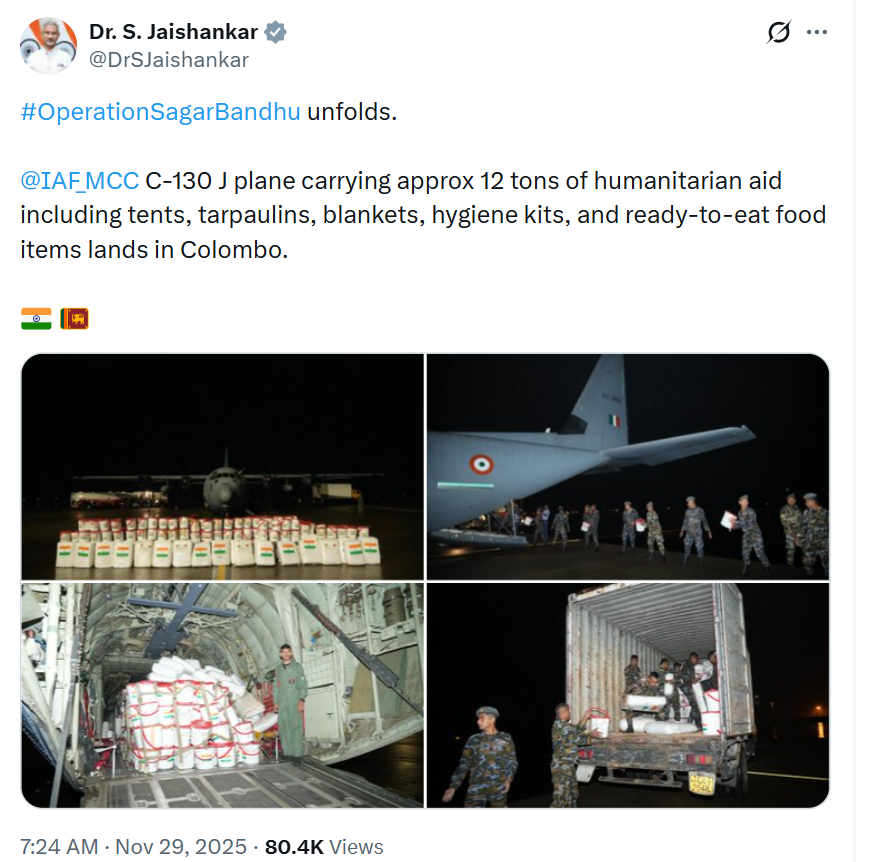 In response to Cyclone Ditwah’s devastation in Sri Lanka, the Indian government swiftly launched Operation Sagar Bandhu, dispatching the C-130 J carrier and relief material to assist the affected population.
