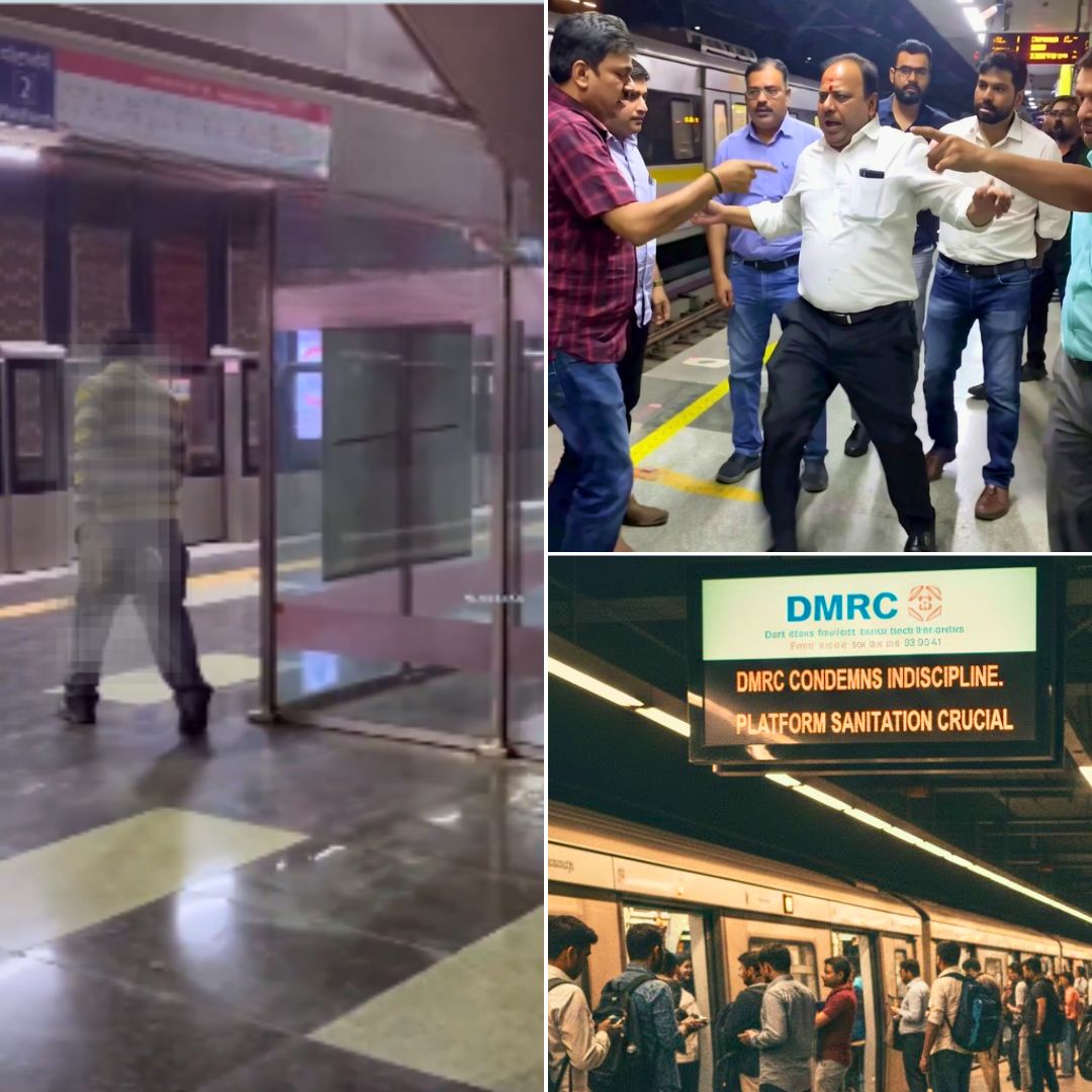 A shocking video posted on social media platform X (formerly Twitter) shows a middle‑aged man relieving himself near the glass railings of a Delhi Metro platform before walking away once he notices the recording.