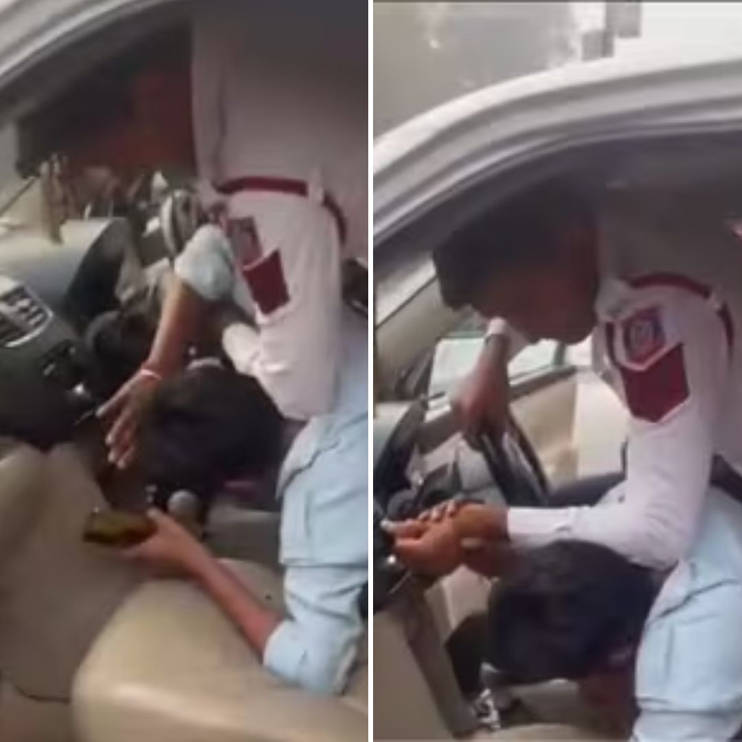 In Paharganj near New Delhi Railway Station, a Delhi Traffic Police officer was caught on camera assaulting a driver inside his car during a routine document and parking check.