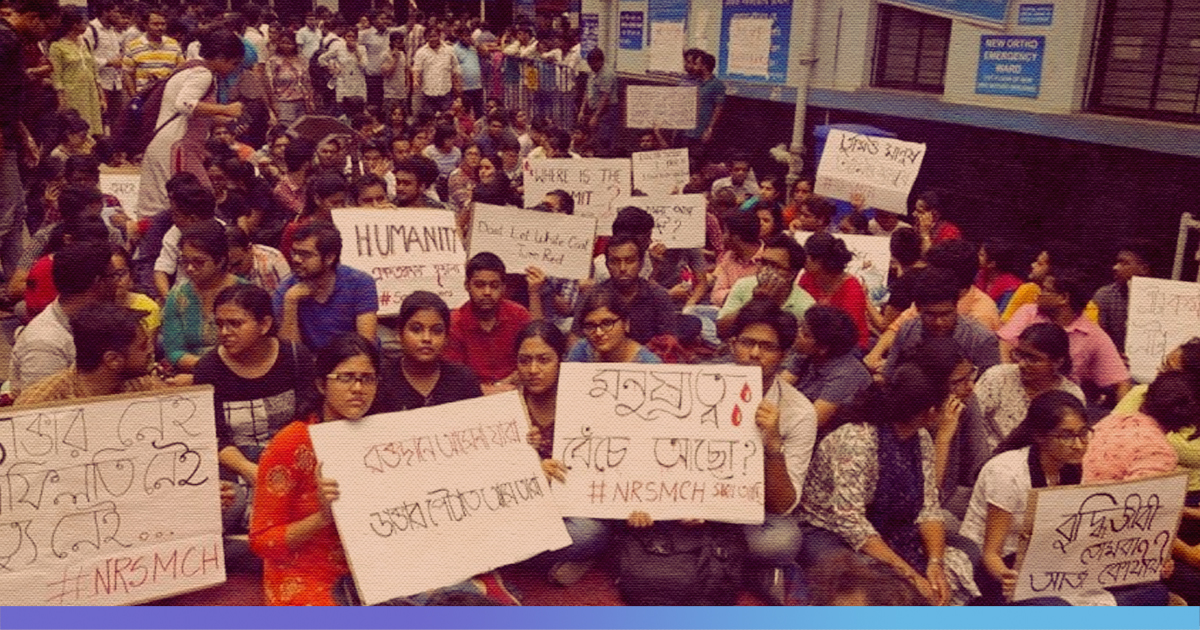 The protests erupted after a junior doctor was brutally beaten up by the kin of a patient for alleged negligence in Kolkata NRS Medical College.