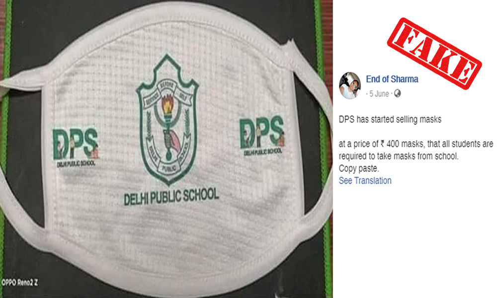 A graphic showing a face mask has gone viral with the claim that the Delhi Public School Society (DPS) is selling face masks to its students for Rs 400 each piece. The masks in the viral photos are printed with the name of the school and logo.