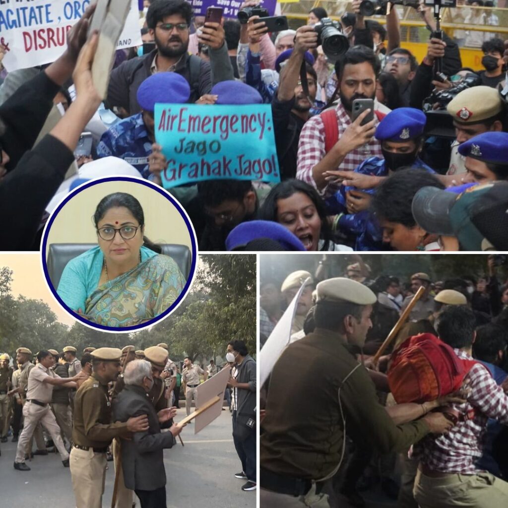 Delhi’s Toxic Air Crisis: GRAP 3 on Hold Amid ‘Slight Improvement’; Several Detained at India Gate Protest Against Rising AQI