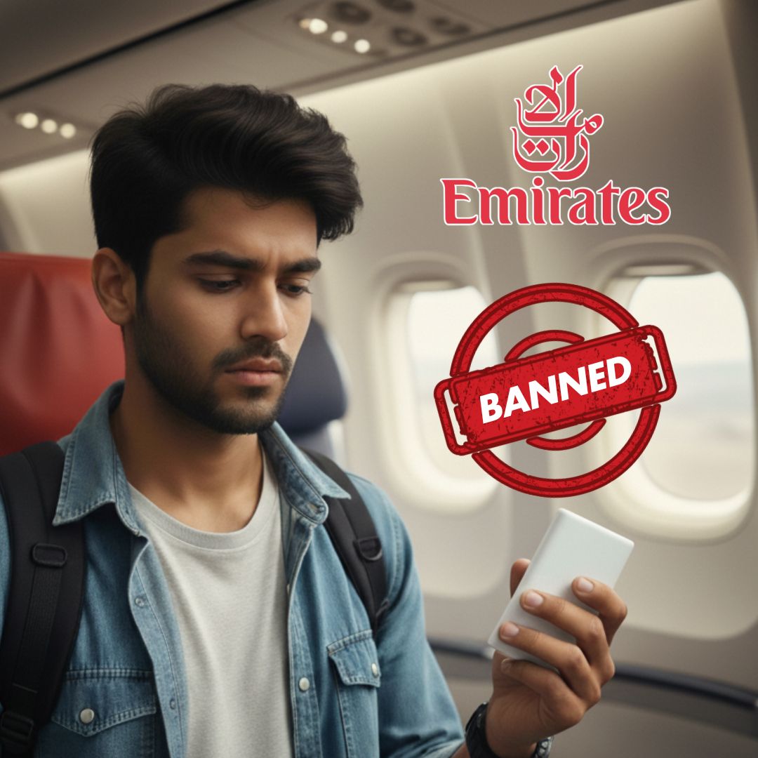 Starting 1 October 2025, Emirates has introduced a strict ban on the use and charging of power banks on all its flights. Passengers can carry only one power bank up to 100 watt-hours (Wh) in their cabin baggage, but it must remain switched off throughout the journey and cannot be used to charge devices or be recharged onboard.