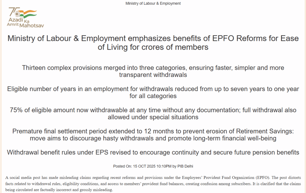 The government highlighted that these reforms simplify withdrawal categories, ease documentation requirements, and balance immediate liquidity needs with long-term financial security for workers and their families.