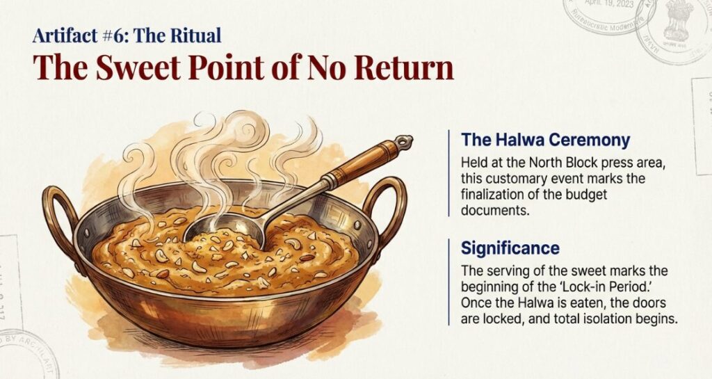 During this time, they have no access to phones, internet, or even their families. This period begins after the traditional Halwa Ceremony, a celebratory event held at the North Block where a large batch of halwa is prepared and served to the staff.