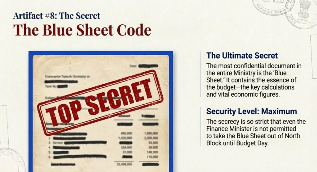 The secrecy surrounding the Blue Sheet is so strict that even the Finance Minister is not permitted to take it out of the North Block. It serves as the ultimate master document from which all other budget figures are derived.