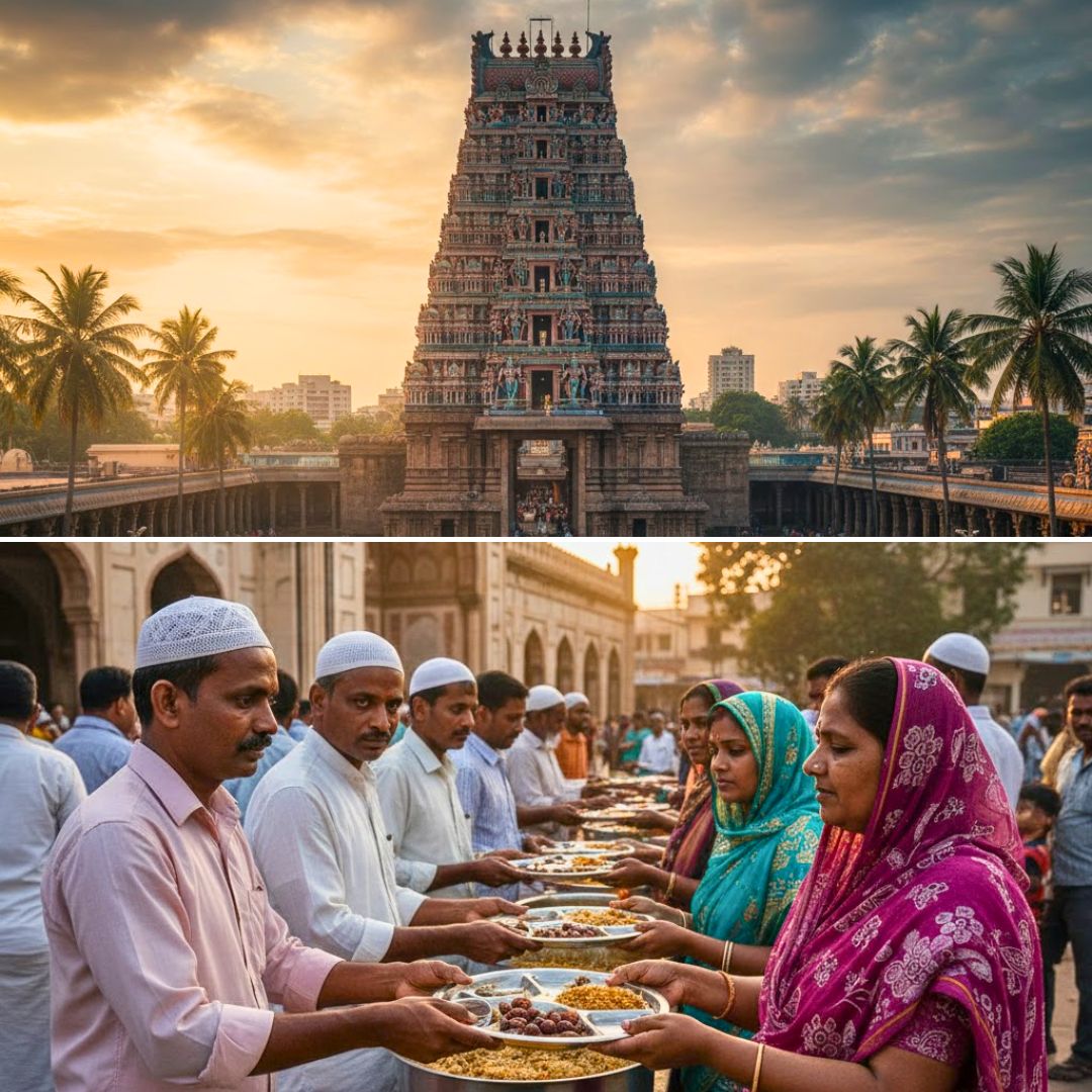 According to historical accounts, the serving of iftar at the mosque began when members of the royal House of Arcot historically custodians of Muslim heritage in the region were impressed by the temple’s cleanliness and service ethic. Together with Ratanchand, they formed an understanding that led to the temple’s daily provision of meals throughout Ramzan, a practice that has continued without interruption.
