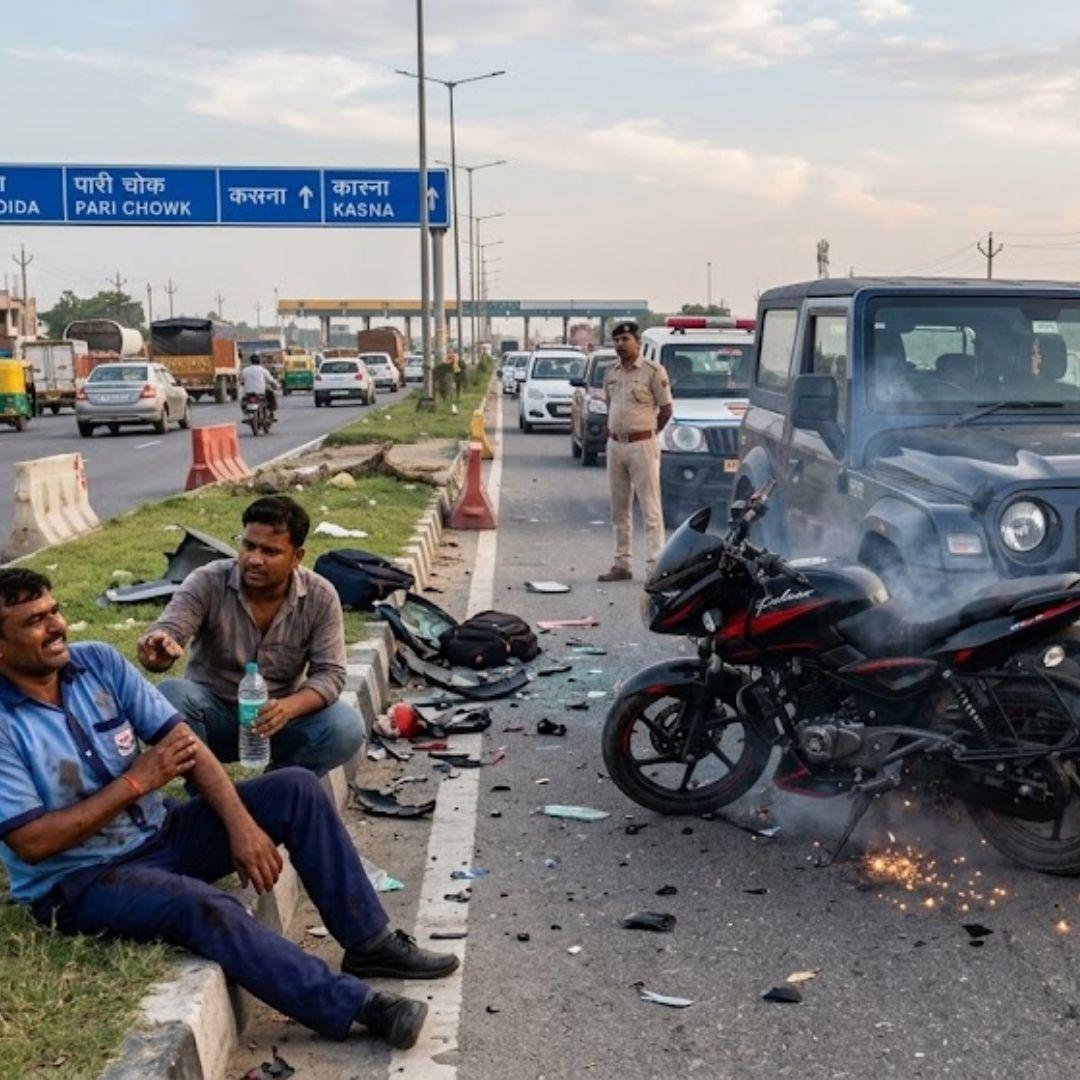 What followed was a dramatic and deeply alarming chase along busy stretches connecting GT Road and National Highway 91. During the pursuit, the Thar allegedly rammed into the motorcycle. The rider fell and suffered injuries, but the motorcycle became stuck underneath the SUV. Instead of stopping after the collision, the driver allegedly continued to drive with the bike wedged beneath the vehicle.