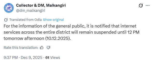 Internet services remain suspended in Odisha’s Malkangiri district following violent clashes between tribal villagers and Bengali settlers over the alleged killing of a 51-year-old tribal woman, leading authorities to impose prohibitory orders under Section 163 of the new criminal code.