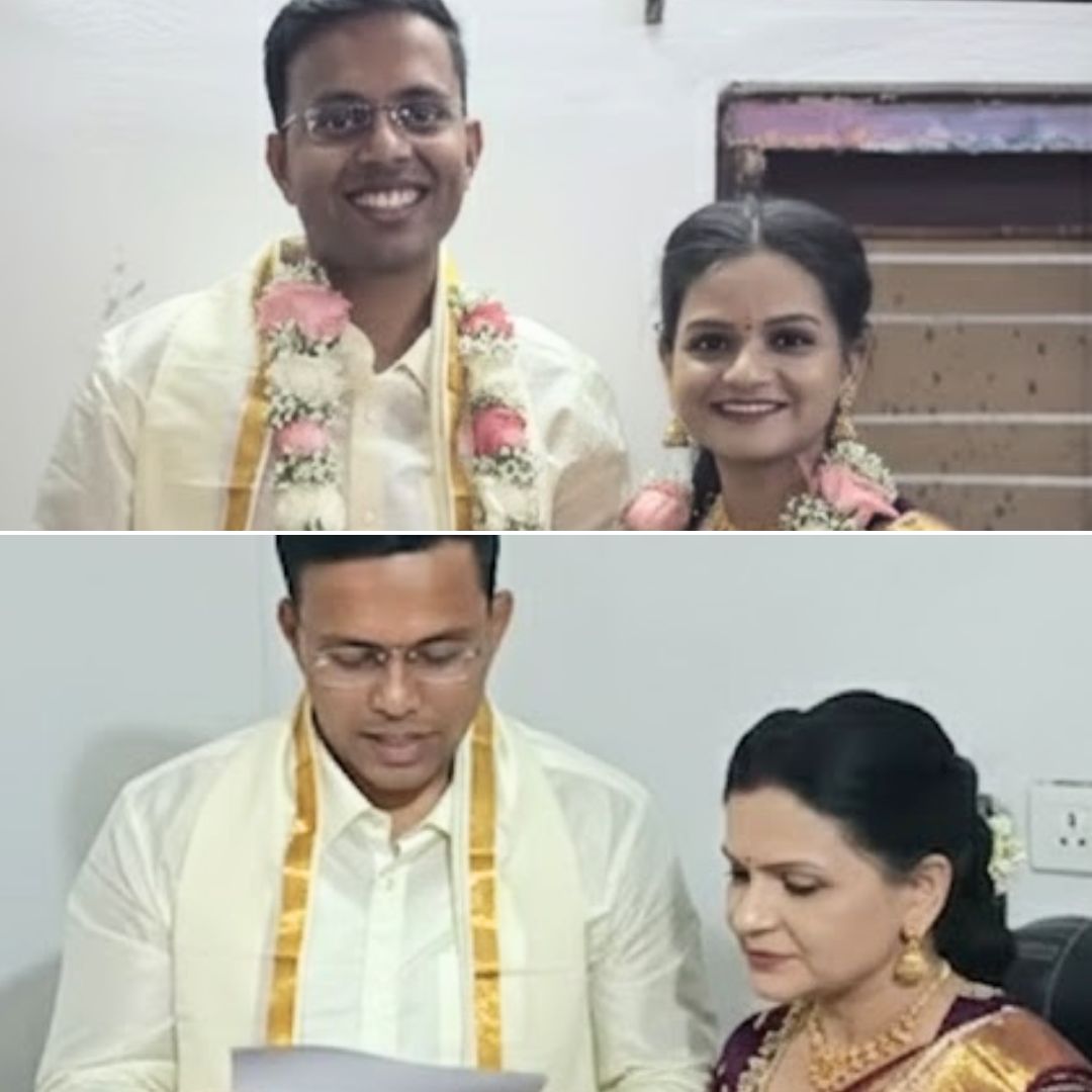 Instead of hosting a traditional wedding celebration with rituals, large gatherings and lavish spending, the couple chose to solemnise their union through a straightforward registration at the Choutuppal Sub‑Registrar Office in the Yadadri Bhuvanagiri district of Telangana.