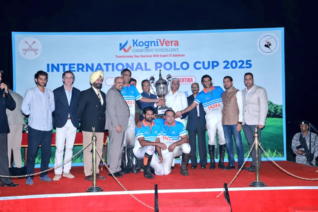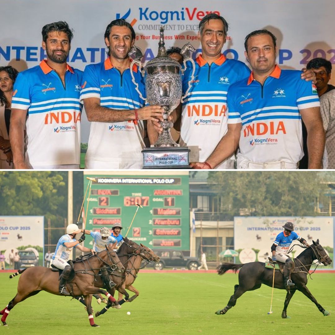 Team India achieved a stunning 10–9 victory over Argentina in the final of the KogniVera International Polo Cup at Delhi’s Jaipur Polo Ground, marking a historic high-goal win after nearly a decade.