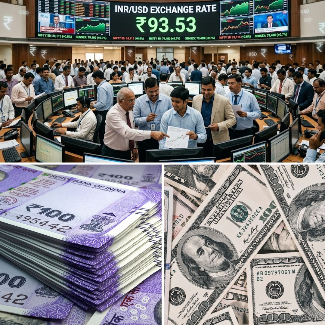 Indian Rupee Surges ₹1.30 to ₹93.53 Against Dollar After RBI Tightens Forex Market Controls