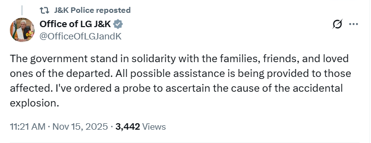 The Lieutenant Governor emphasized strict scrutiny and accountability for any lapses. Authorities sealed off the area, and multiple hospitals in Srinagar treated the injured, while investigation agencies are analysing CCTV footage and digital evidence to determine the exact cause.