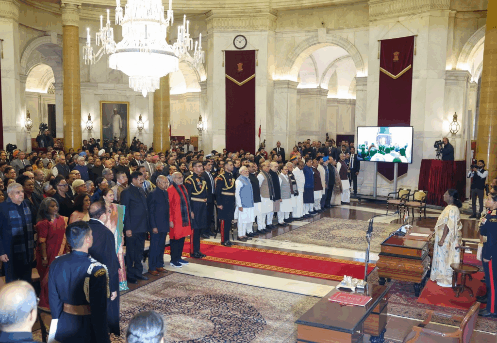 The oath was administered by President Droupadi Murmu at Rashtrapati Bhavan, attended by Prime Minister Narendra Modi, Union Home Minister Amit Shah, Defence Minister Rajnath Singh, Lok Sabha Speaker Om Birla, and other dignitaries.