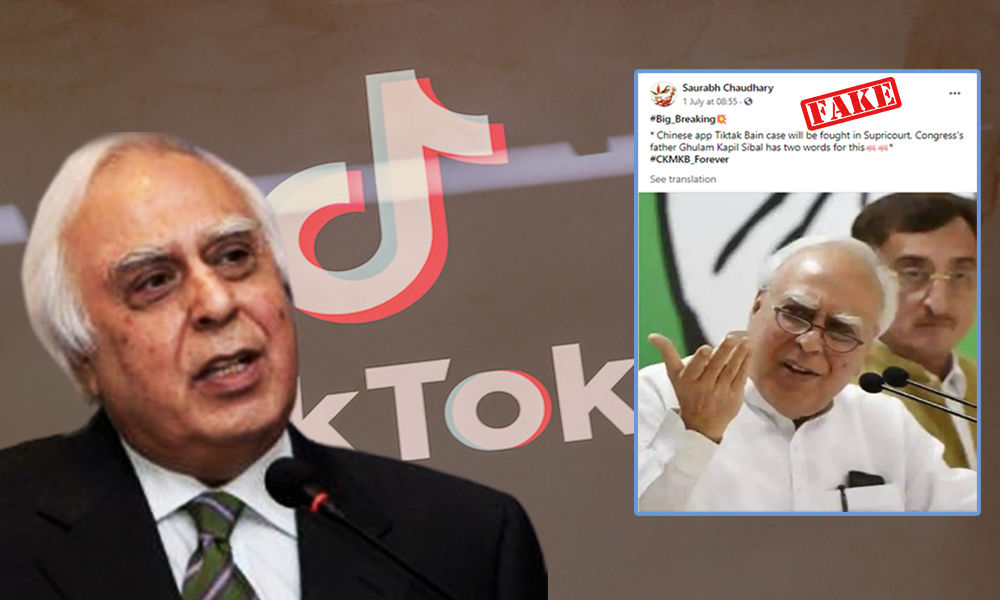 There are no reports or official confirmations which say that Congress leader Kapil Sibal who is also a lawyer has decided to challenge the government’s decision on banning Tik Tok in the supreme court.