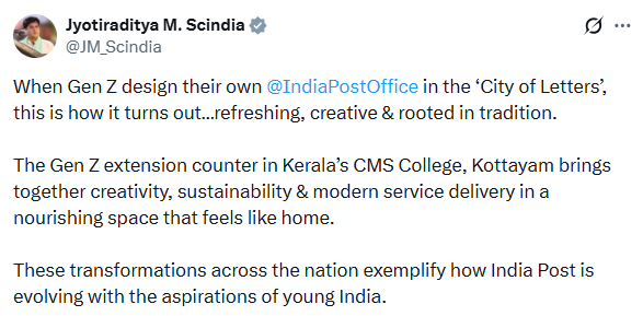 The launch of Kerala’s first Gen Z Post Office is a powerful demonstration of innovation in public service. This initiative successfully moves beyond merely offering a service; it invests in the experience of the user, particularly the youth who are the architects of our future.