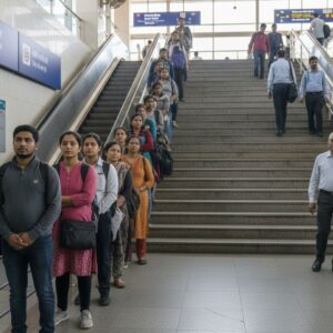 A viral Karol Bagh metro video shows commuters queuing on one side, keeping the other side clear.