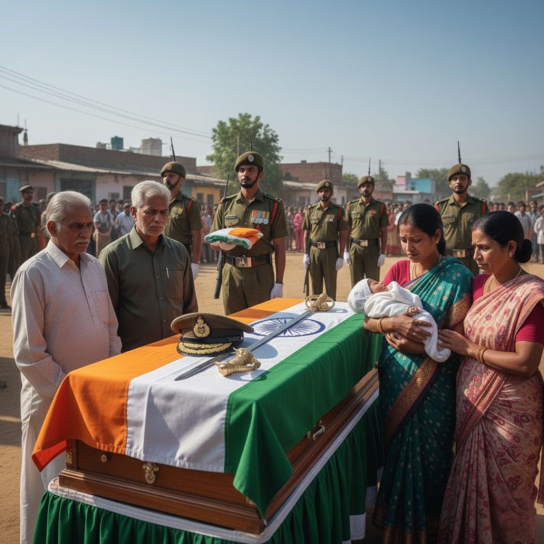 The village of Dare Turf Aare stood in silence as the tricolour was folded and handed to his grieving family, marking the end of a soldier’s journey that was as brief as it was brave.