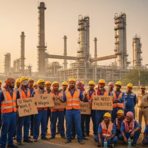 Hundreds of IOCL Panipat contract workers protested long hours, unpaid overtime, poor facilities, triggering clashes.