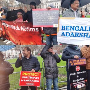Hundreds of protesters gathered at the UK Parliament to demand intervention against the persecution of Bangladeshi Hindus.