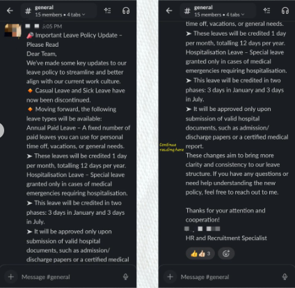 Screenshots from an internal LinkedIn post, shared on Reddit’s r/india subreddit under “Important Leave Policy Update”, reveal a firm’s sweeping changes to employee leaves, framed by HR and Recruitment Specialist Priya Sharma as “key updates” to simplify systems and align with “current work culture”.