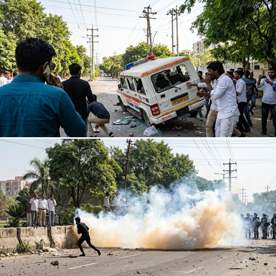 Fresh violence broke out in Noida’s Sector 80 on Tuesday, April 14, as protesting industrial workers engaged in stone-pelting, forcing a heavy police crackdown. The unrest, which began on Monday with over 40,000 workers across Phase-2 and Sector 62, stems from demands for a minimum monthly wage of ₹20,000 to combat rising inflation.