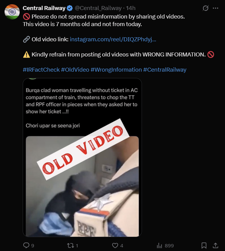 Central Railway clarified on the social media platform X that the video is not recent but approximately seven months old, dating back to around April 2025. The video shows a genuine incident but is being recirculated as new, misleading viewers about its timing. Verified sources affirming this include: