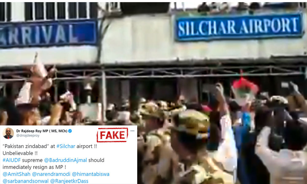 Himanta Biswa Sa rma, a BJP MLA from Assam shared a video claiming that All India United Democratic Front (AIUDF) raised slogans of ‘Pakistan Zindabad’ while welcoming their party Chief Badruddin Ajmal at Silchar airport.