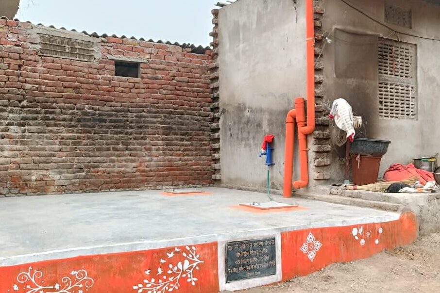 Now, a rooftop rainwater harvesting tank has been built at her home. She helped dig the pit herself, did masonry work, and contributed three bags of cement. The tank is locked to keep the water clean, and water is drawn through a handpump and filtered before drinking.