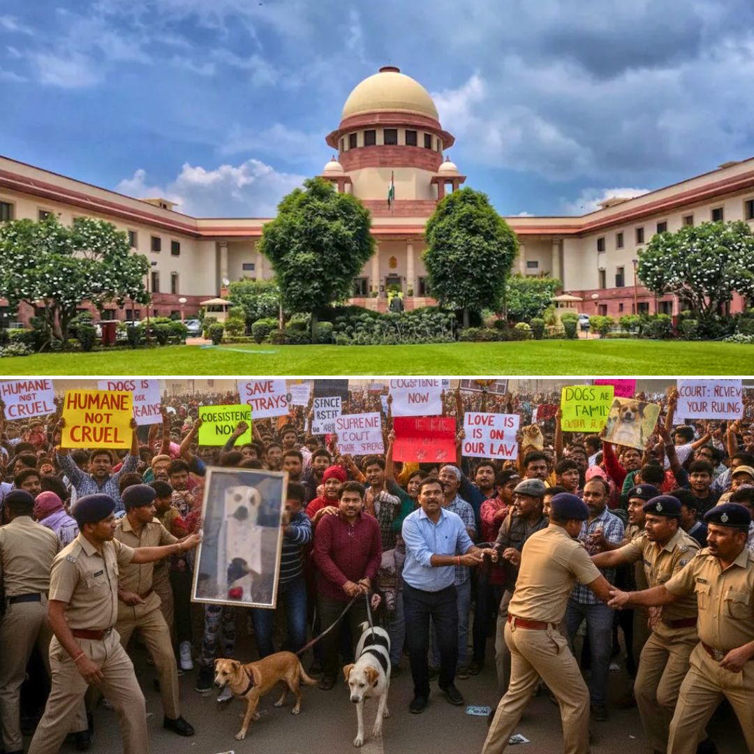 The Supreme Court mandates removal and sheltering of stray dogs from key public spaces, igniting protests.