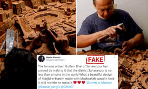 A set of photographs apparently showing an artisan from Saharanpur, Uttar Pradesh, making intricate wood carvings is being circulated on social media. ‘The famous artisan