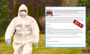 A WhatsApp forward claiming that under the Disaster Management Act, only the government is allowed to post any kind of information related to the novel
