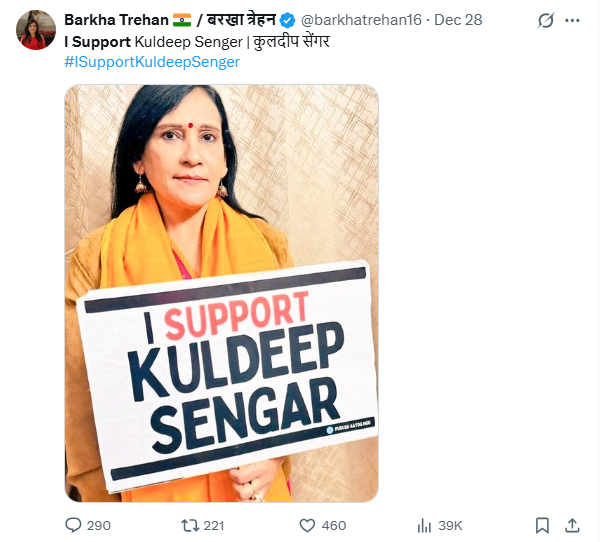 पोस्टर में लिखा- I Support Kuldeep Sengar pic.twitter.com/2qZno6YpWK
