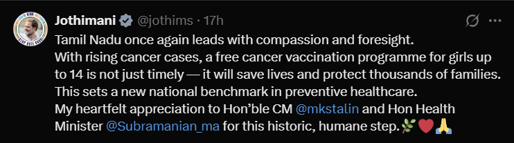 Tamil Nadu’s initiative exemplifies how prioritising prevention and equal healthcare access can transform public health outcomes. By protecting young girls early, the state not only addresses a major cause of female mortality but also promotes health equity and empowerment.