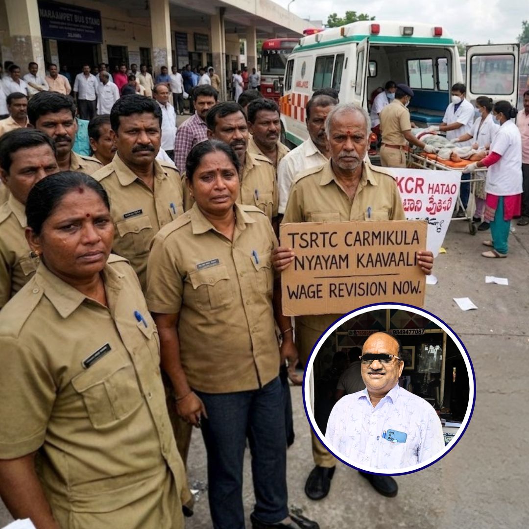 The incident took place in the backdrop of a large-scale TSRTC strike involving tens of thousands of employees across Telangana. The protest has brought public transport services to a standstill in several regions, severely impacting daily commuters.