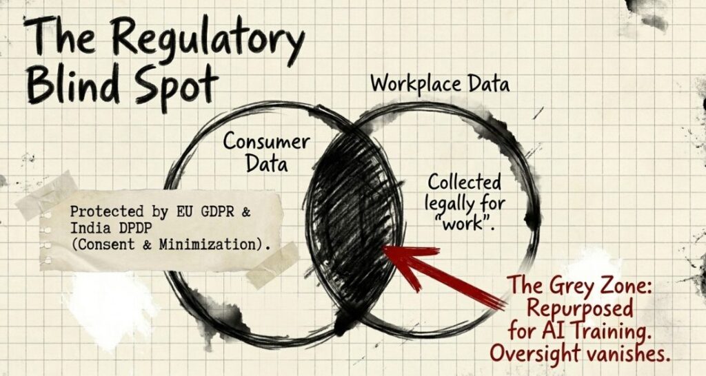 Most regulations focus on consumer data, not employee-generated behavioural data used for secondary purposes like AI training.