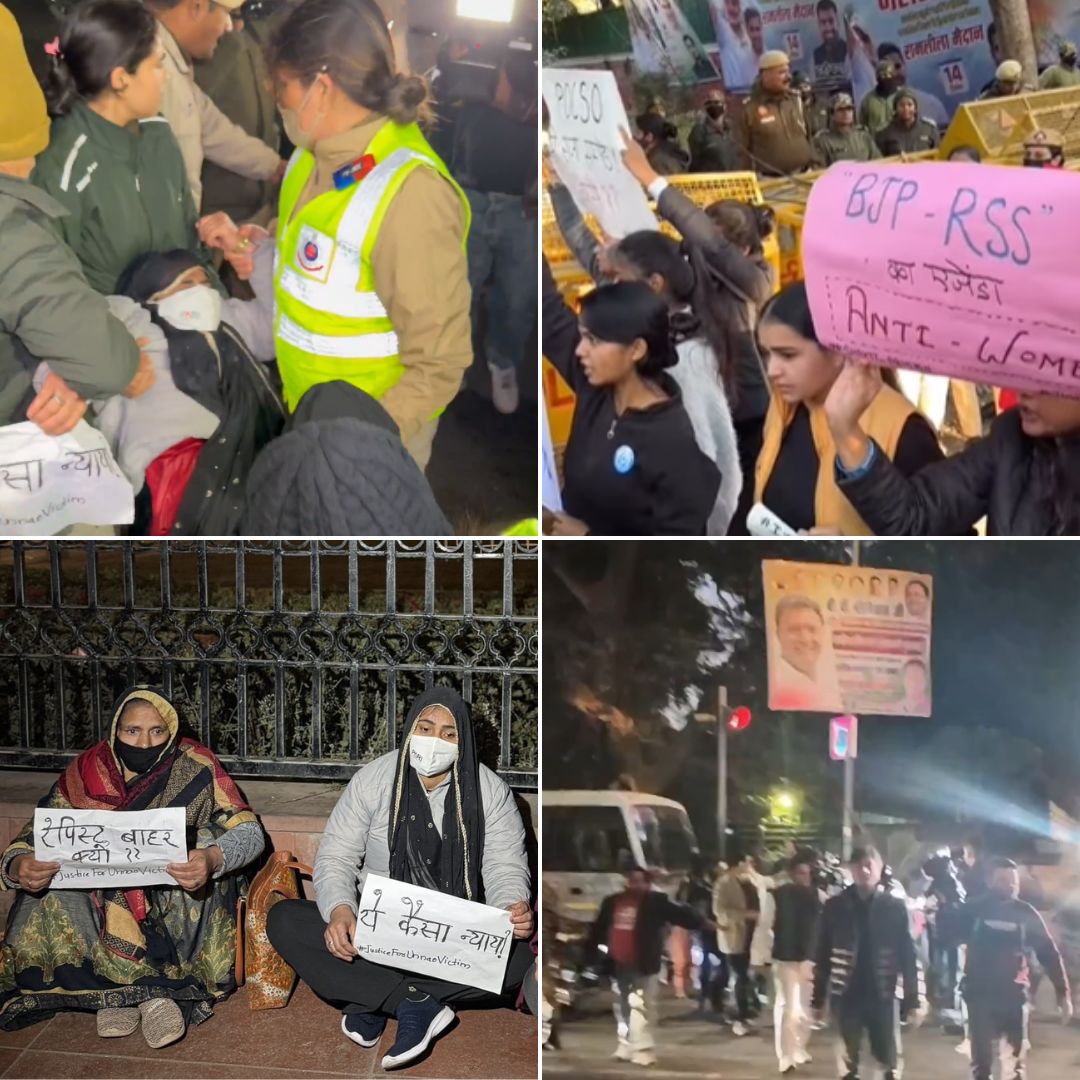 Hang the guilty ones who destroyed our lives,” she told reporters, her voice breaking. This marked the third day of unrest since the December 23 order, with prior clashes at Mandi House where the survivor herself was dragged by police during a sit-in.